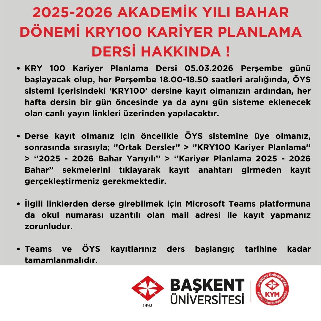 KRY100 KARİYER PLANLAMA DERSİ 2025-2026 BAHAR YARIYILI HAKKINDA !